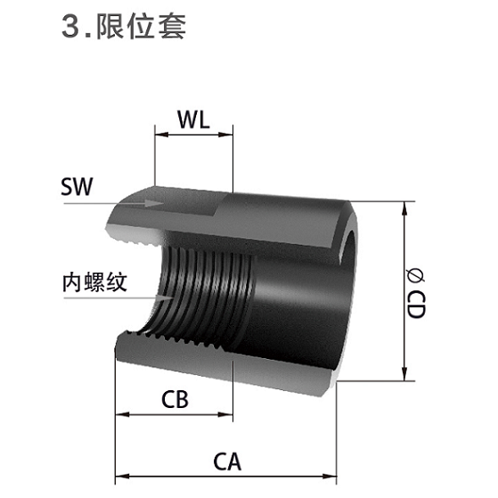 注意:只能用于不帶消音冒的緩沖器,承受較大側負荷角度小于30°